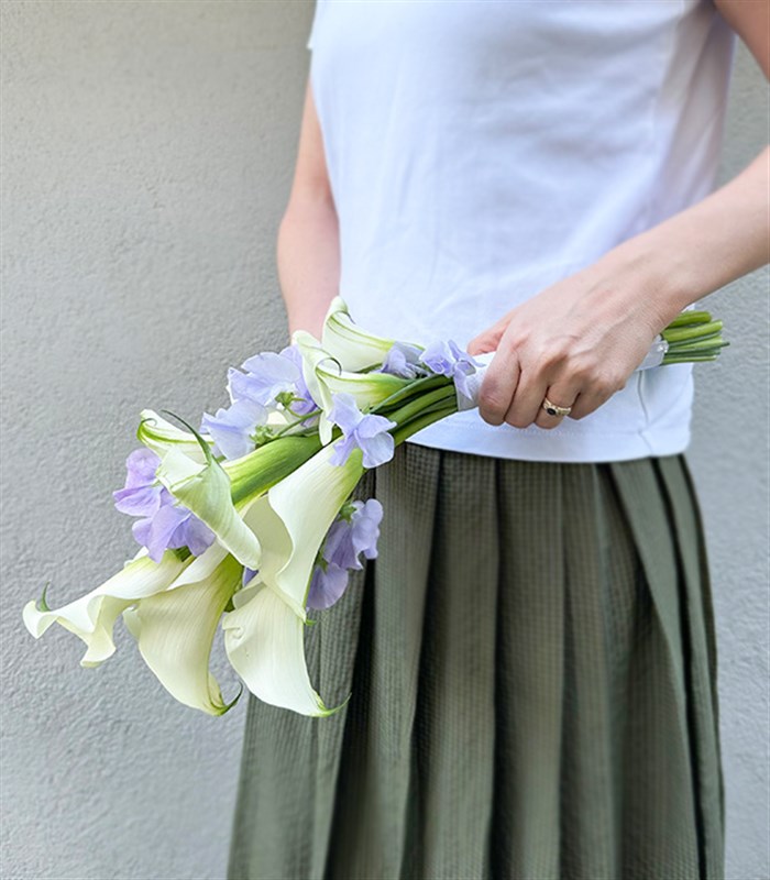 10 Beyaz Gala Lila Bahar Çiçekleri Gelin Buketi