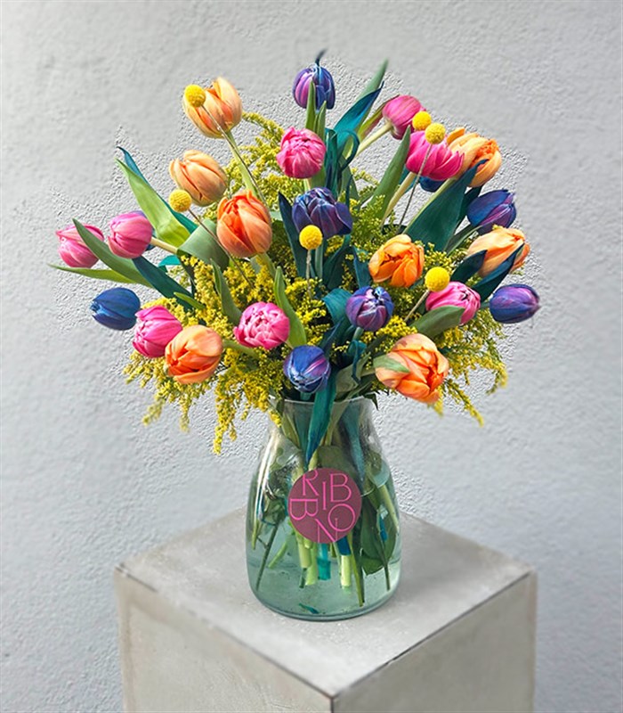 25 Rengarenk Laleler Vazo Turuncu Pembe Galaksi Lale