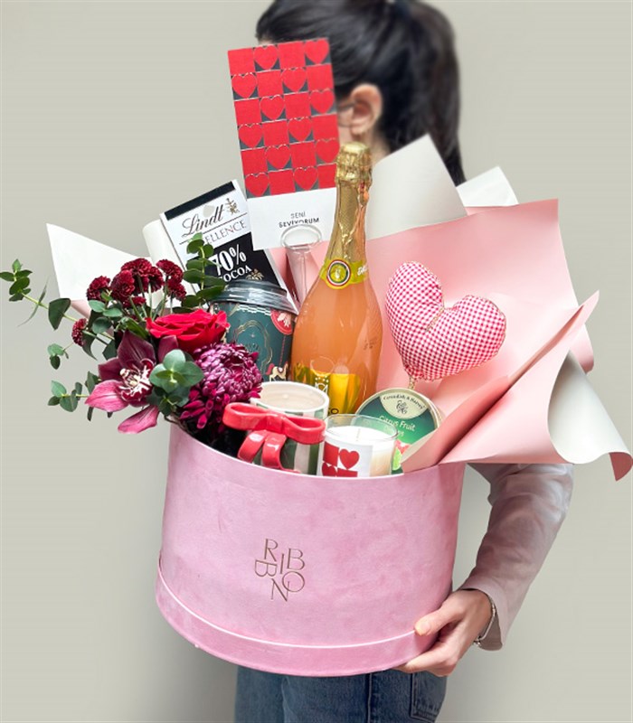 Alkolsüz Şampanyalı Pembe Hediye Kutusu Grand Deluxe