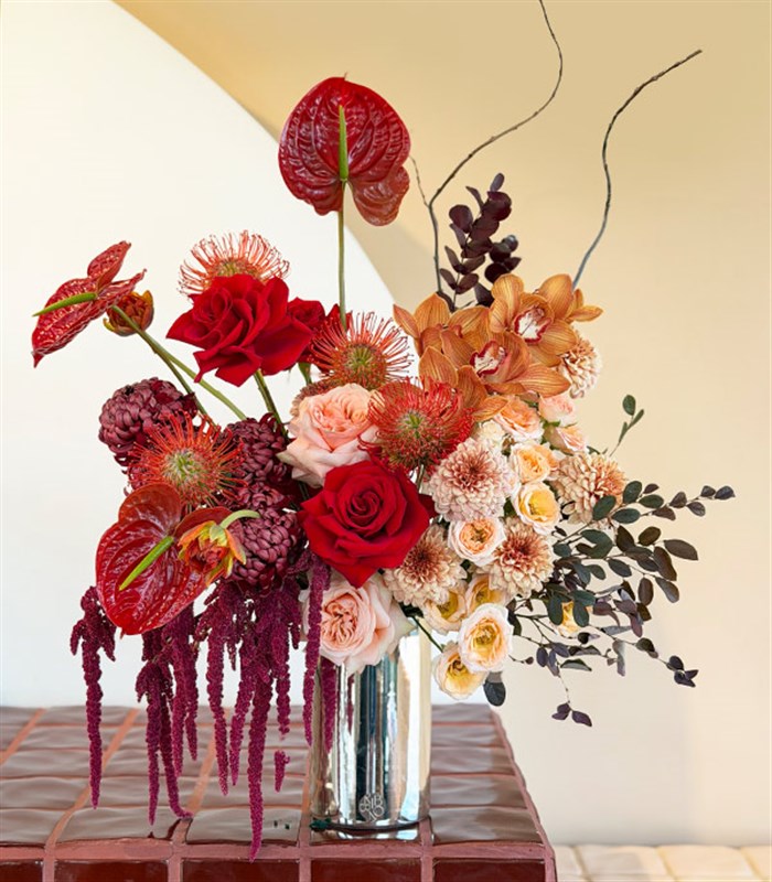 Amour Sculpted Silver Vazoda Kırmızı Gül Çiçekleri