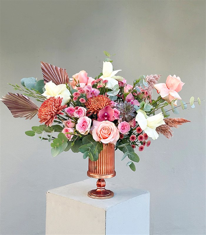 Aurelia Bakır Vazoda Pembe Somon Sonbahar Aranjmanı