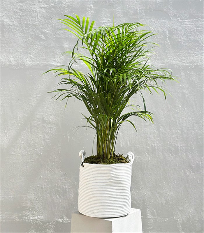 Beyaz Doğal Jüt Sepette Chamaedora Elegans Dağ Palmiyesi 80 cm