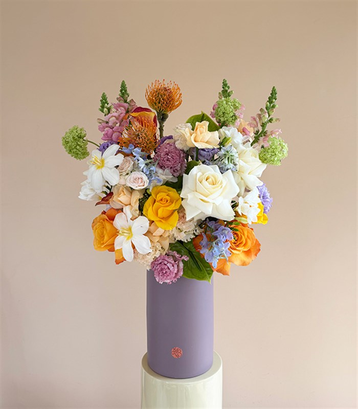 Bloom Deluxe Lila Seramik Vazoda Bahar Çiçekleri