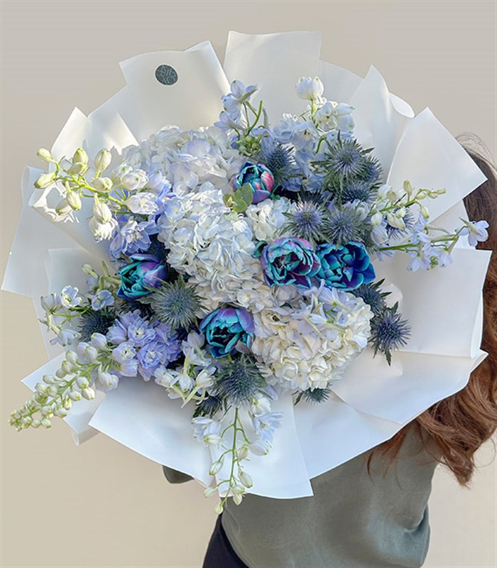 Cerulean Galaksi Lale Mavi Ortanca Delfinyum Buketi