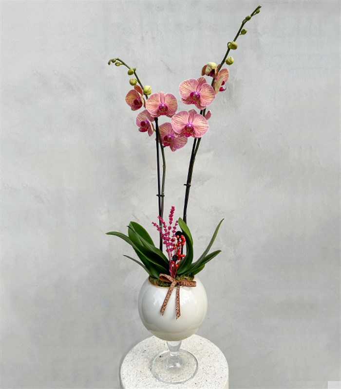 Deluxe Ayaklı Krem Vazoda Vazoda Orkide Narçiçeği