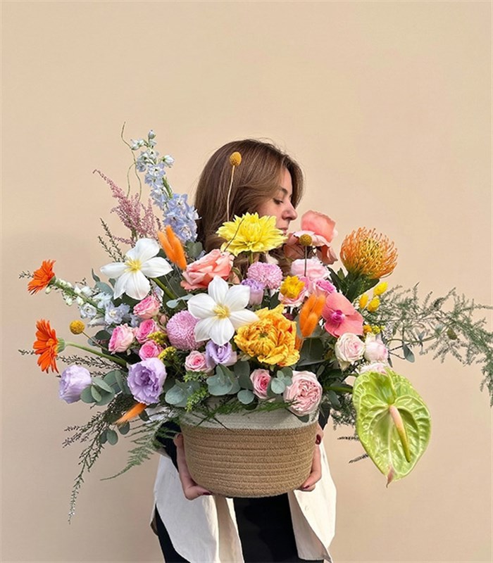 Deluxe Sepette Rengarenk Kır Çiçekleri Aranjmanı Limited Edition
