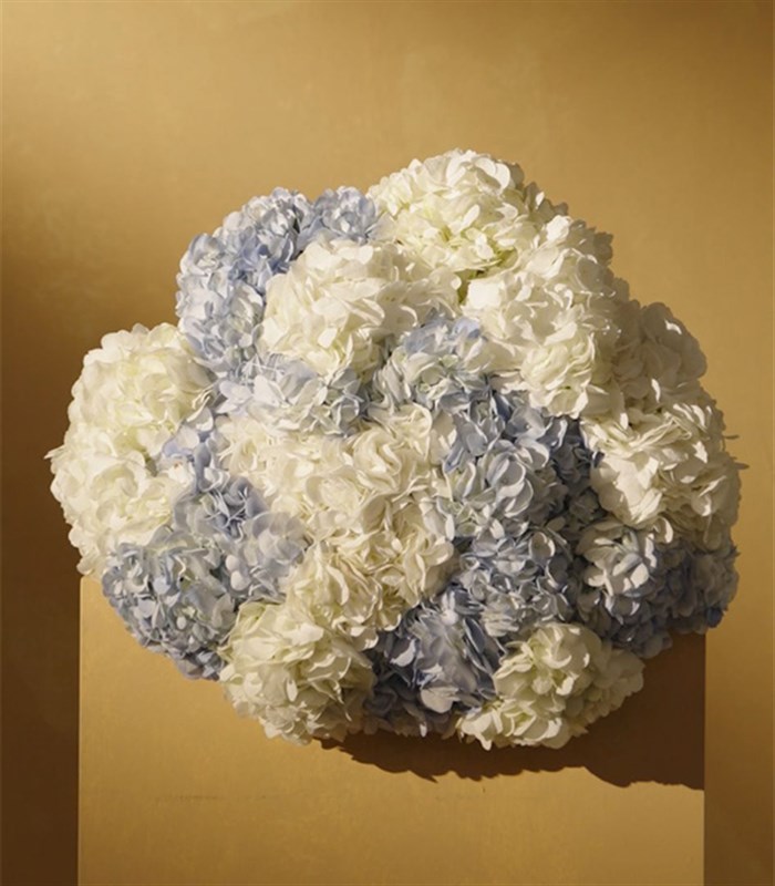 10 adet beyaz, 10 adet mavi ortanca ile hazırlanmış muhteşem bir buket.
