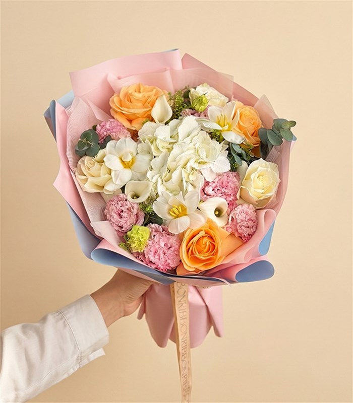 Eloria Beyaz Ortanca Gala Kayısı Gül Buketi