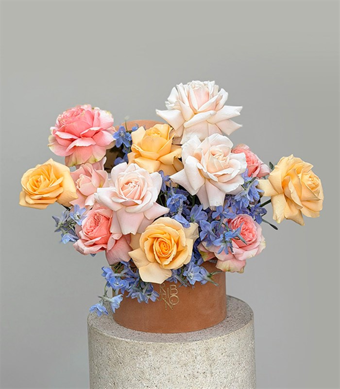 First Date Toffee Kutuda Delfinyum Pastel Pembe Güller