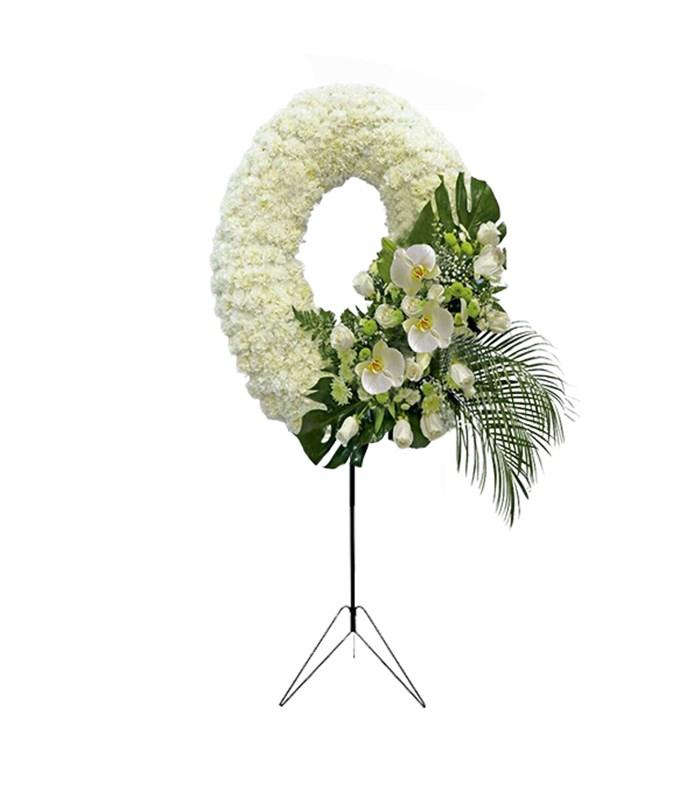 Çiçek çelenk, mevsiminde ve taze karanfiller kullanılarak oluşturulur. Her biri özenle yetiştirilen lüks ve kaliteli karanfil buketlerini, gold detaylı ferforje çerçevede bir araya getiren bu yapıda birden çok renk seçeneği bulunur. Ürün üzerinde kullanılan karanfilleri isterseniz;