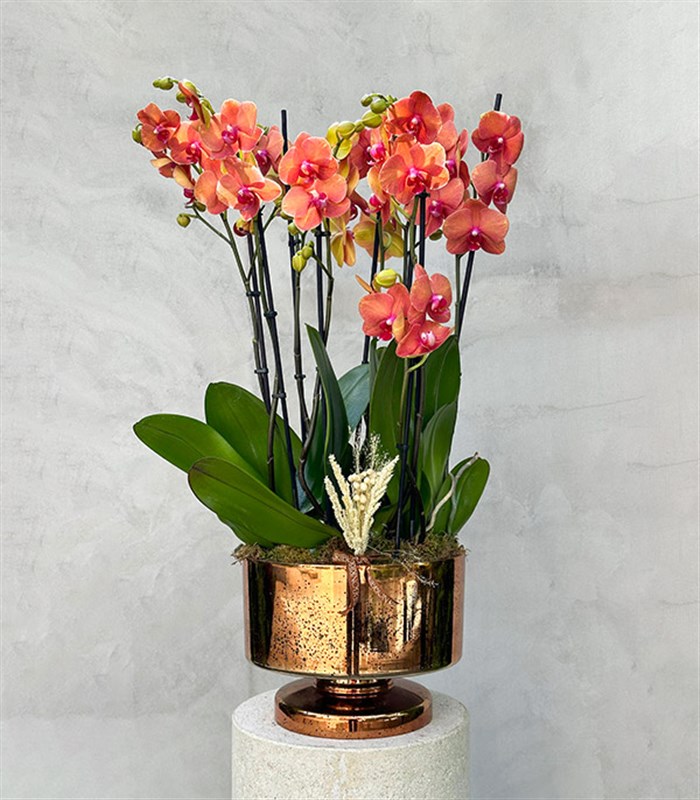 Eskitme Grand Cam Saksıda Narçiçeği Coral Orkideler 8 Dallı