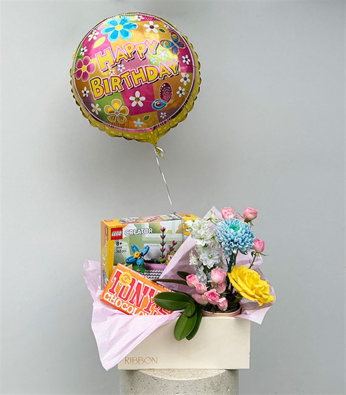 Happy Birthday LEGO Creator Çiçek Balon Hediye Kutusu
