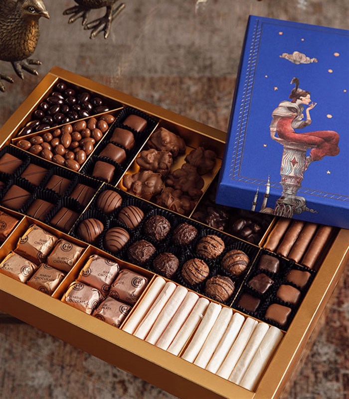 Harem Chocolate'ın en sevilen tatlarından oluşan özel tasarım kapaklı kutuda sevdiklerinize hediye edebileceğiniz lezzetli alternatif.
