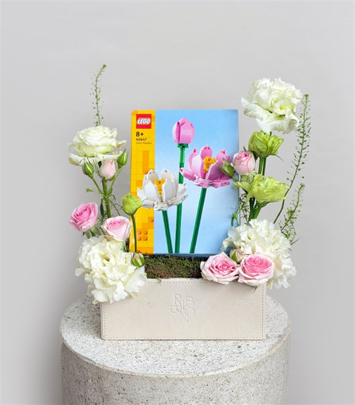 Krem Deri Kutuda LEGO Lotus Çiçekleri Hediye Aranjmanı