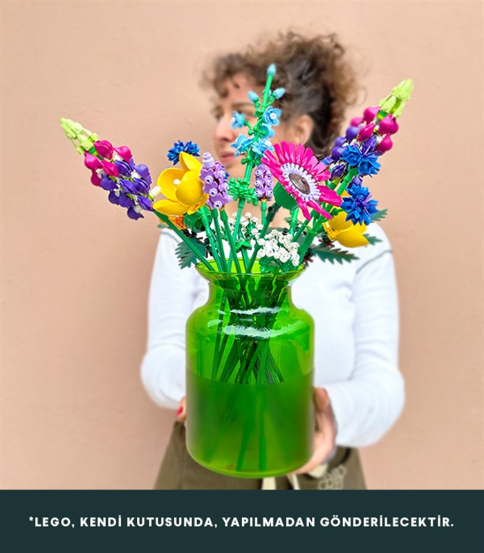 LEGO Botanic Collection Kır Çiçekleri Buketi rengarenk mini aranjman ve yeşil vazo ile "Sınırlı Sayıda" dizayn edildi.