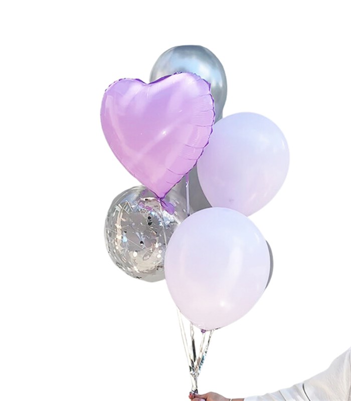 Lila Uçan Kalp Silver Confetili Balon Seti