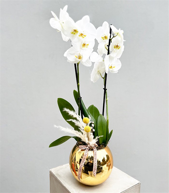 Sevdiklerine Gold Vazoda İki dallı beyaz orkide gönder