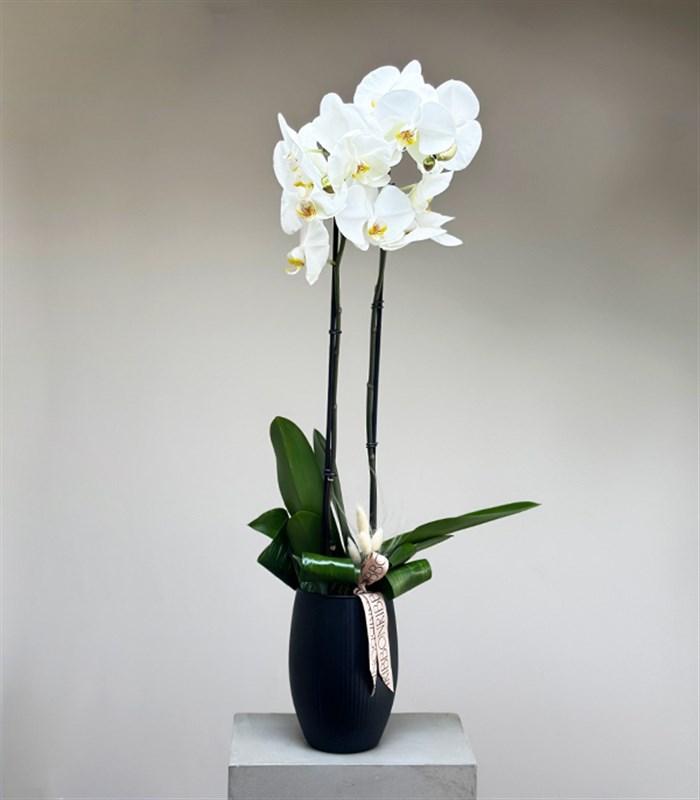 Luxe Mat Siyah Uzun Vazoda Beyaz Orkide