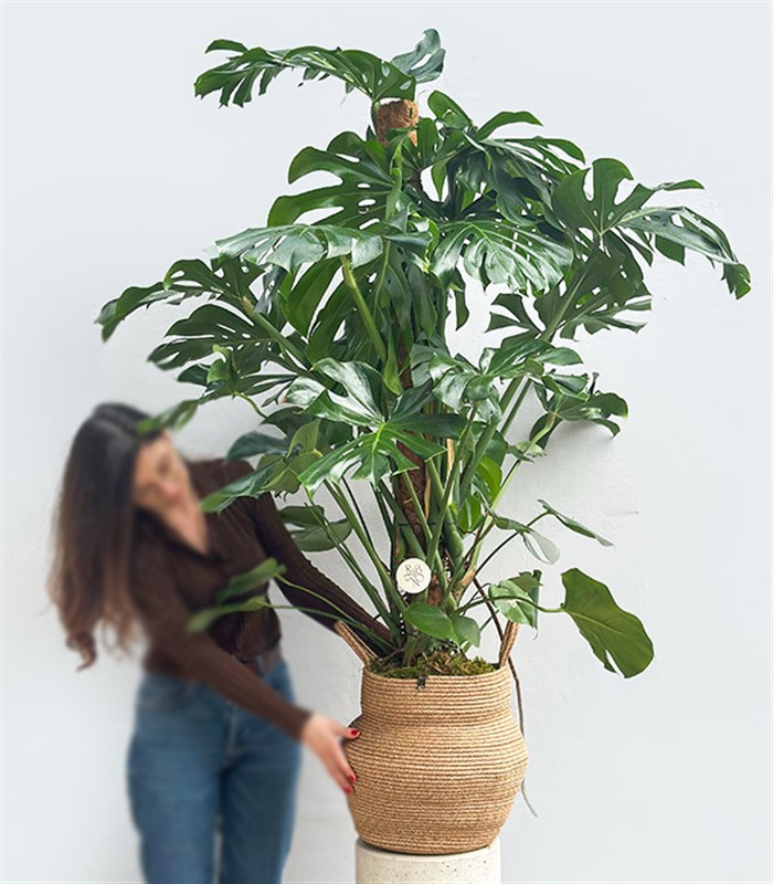 El İşi Doğal Jüt Sepette ekili Monstera Deliciosa 190 cm
