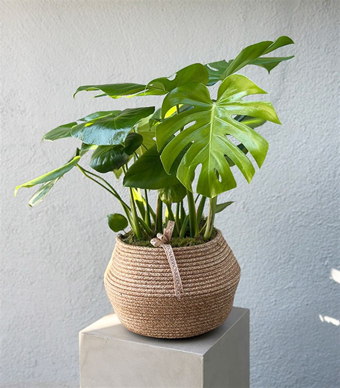 Monstera Deliciosa Hasır Sepet Saksıda Deve Tabanı