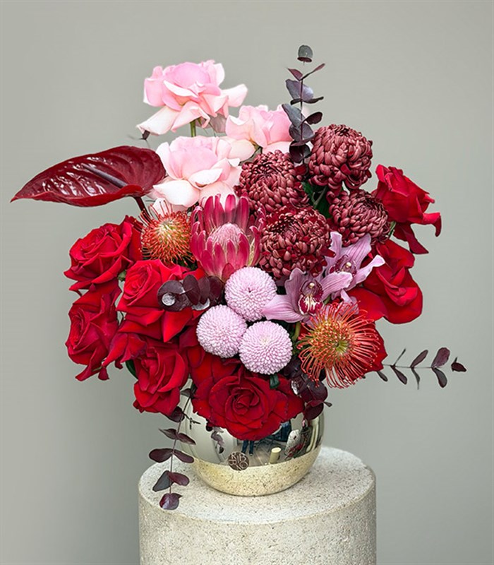 Poem Silver Vazoda Pembe Kırmızı Güller Çiçekleri