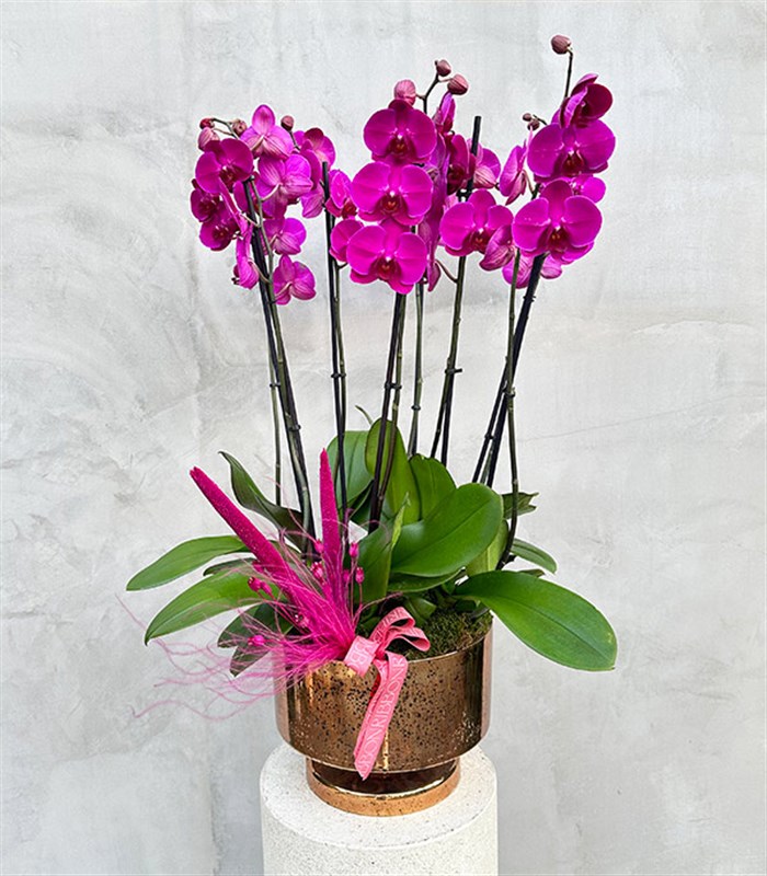 Eskitme Gold Grand Cam Saksıda Fuşya Orkideler
