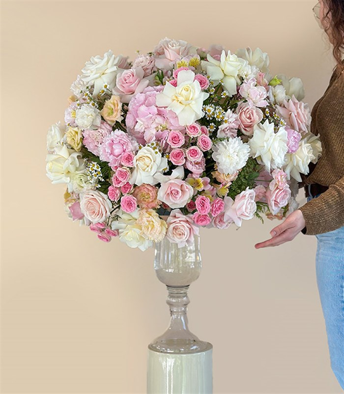 Royal Deluxe Panoramik Pudra Şakayık Ortanca Gül Aranjmanı