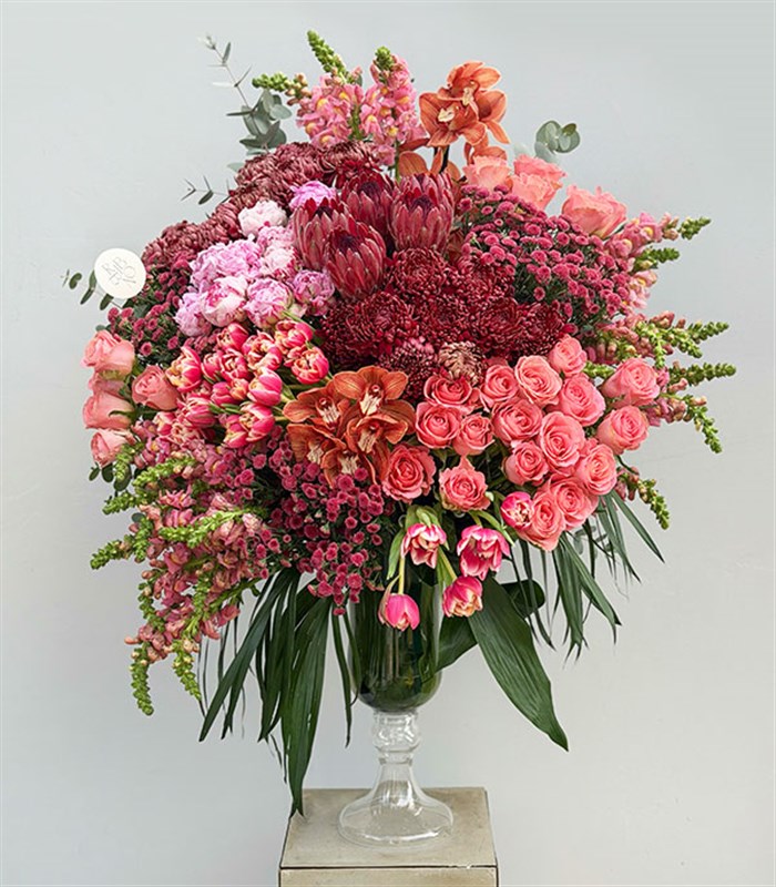 Royal Deluxe Pembe Şakayık Bordo Anastasya Gül Lale Aranjman