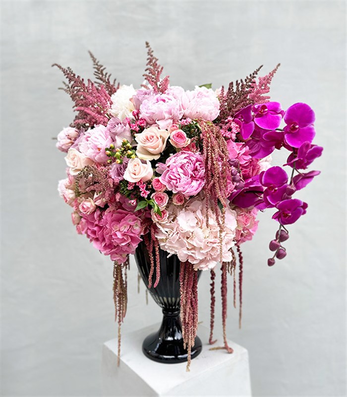 Royal Deluxe Panoramik Pembe Şakayık Ortanca Orkide Aranjman