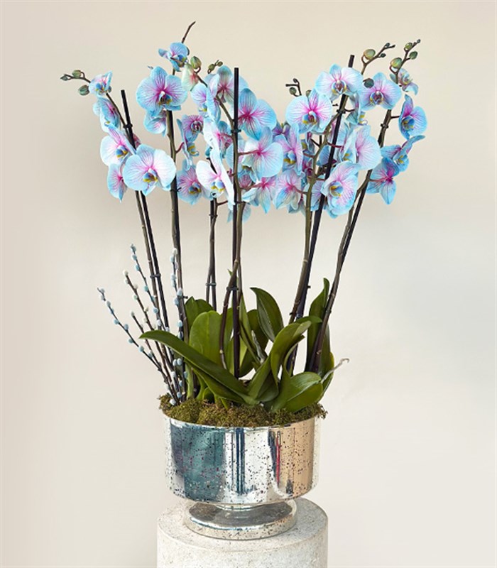 Royal Deluxe Silver Saksı 8 Dallı Orkide Mavi Pembe Orkide Bubble Gum
