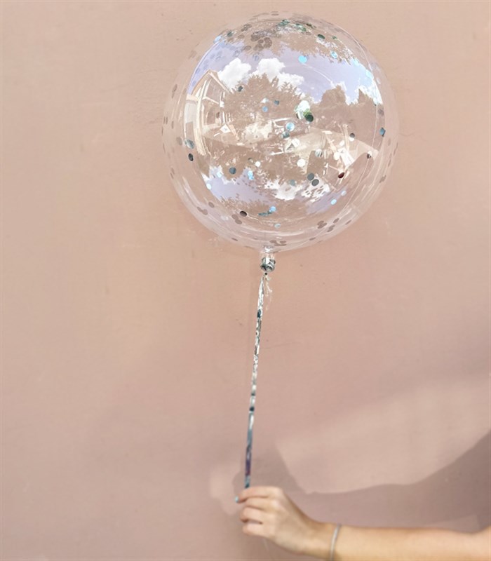 Silver Confetili Şeffaf Uçan Balon 40 cm