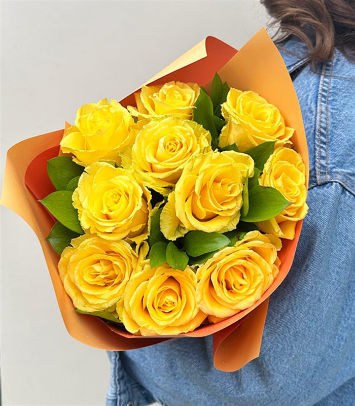 10 adet sarı gül ve yeşillik bulunmaktadır.