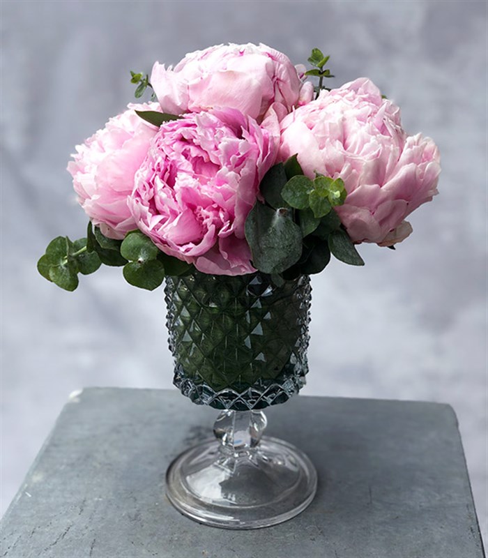 Mini Kesme Ayaklı Vazoda Pembe Şakayık